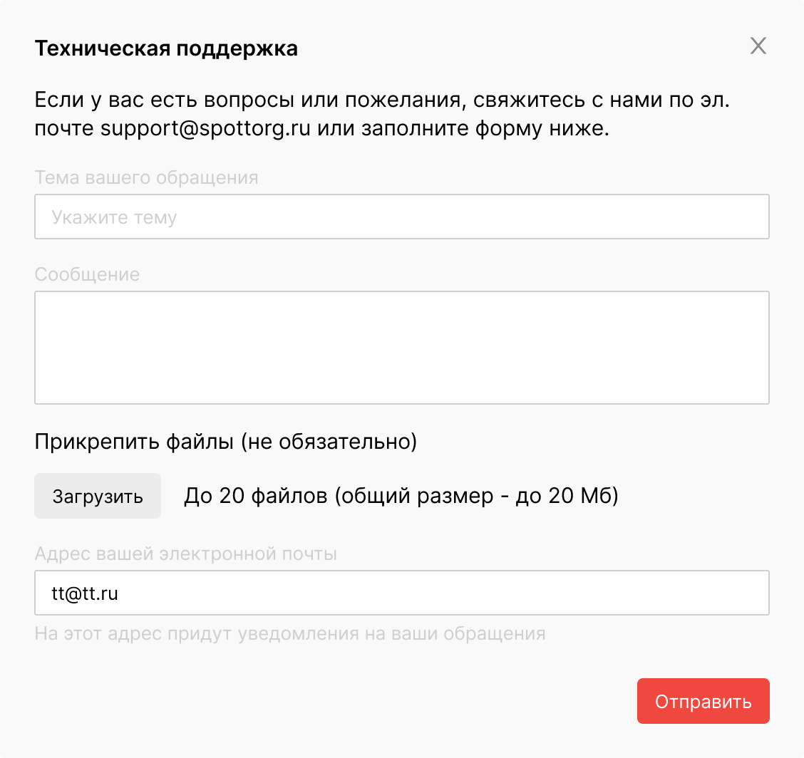 - Заполните форму в техническую поддержку через меню Техническая поддержка