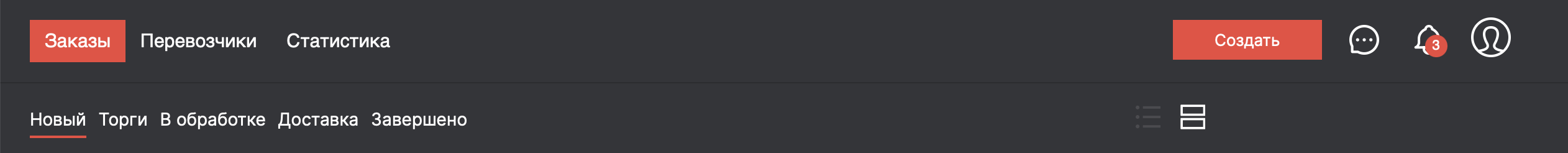 - Доставка - отображают заказы в пути с информацией об этапе перевозки от перевозчика