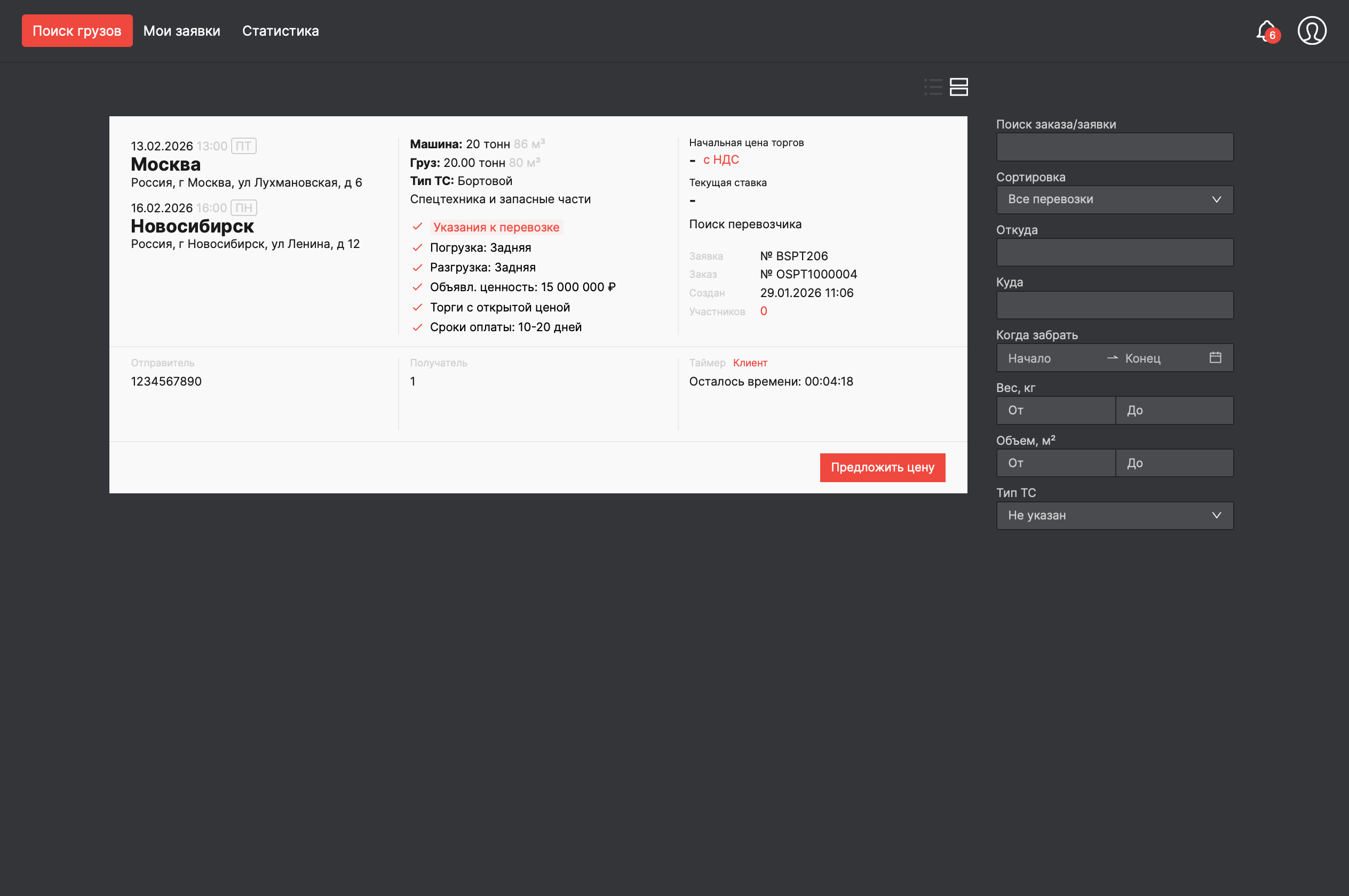 Ознакомьтесь с условиями перевозки, текущими ставками