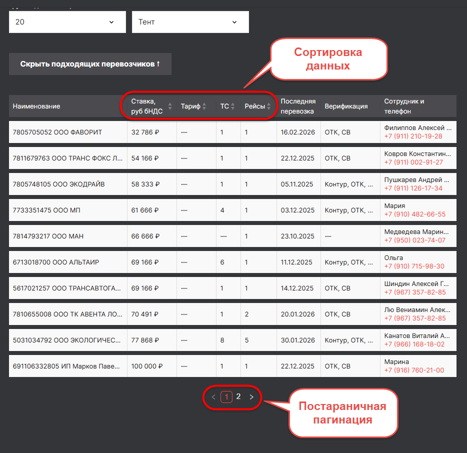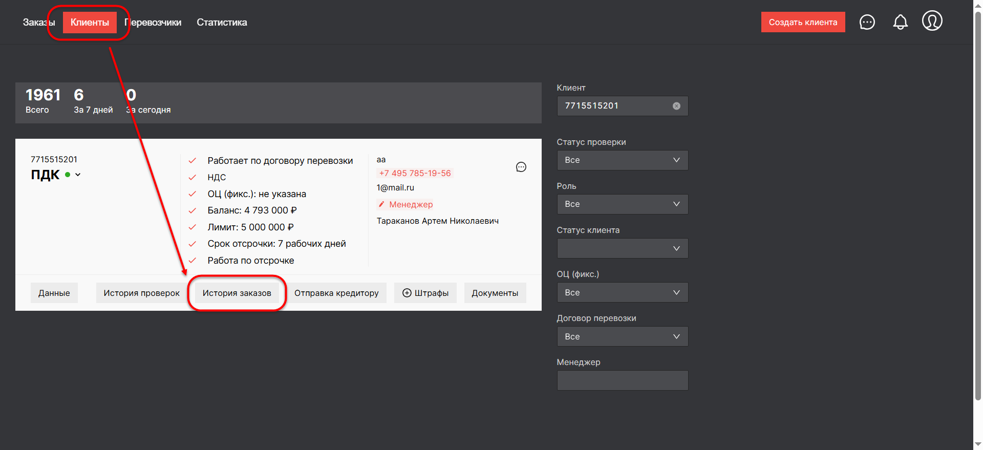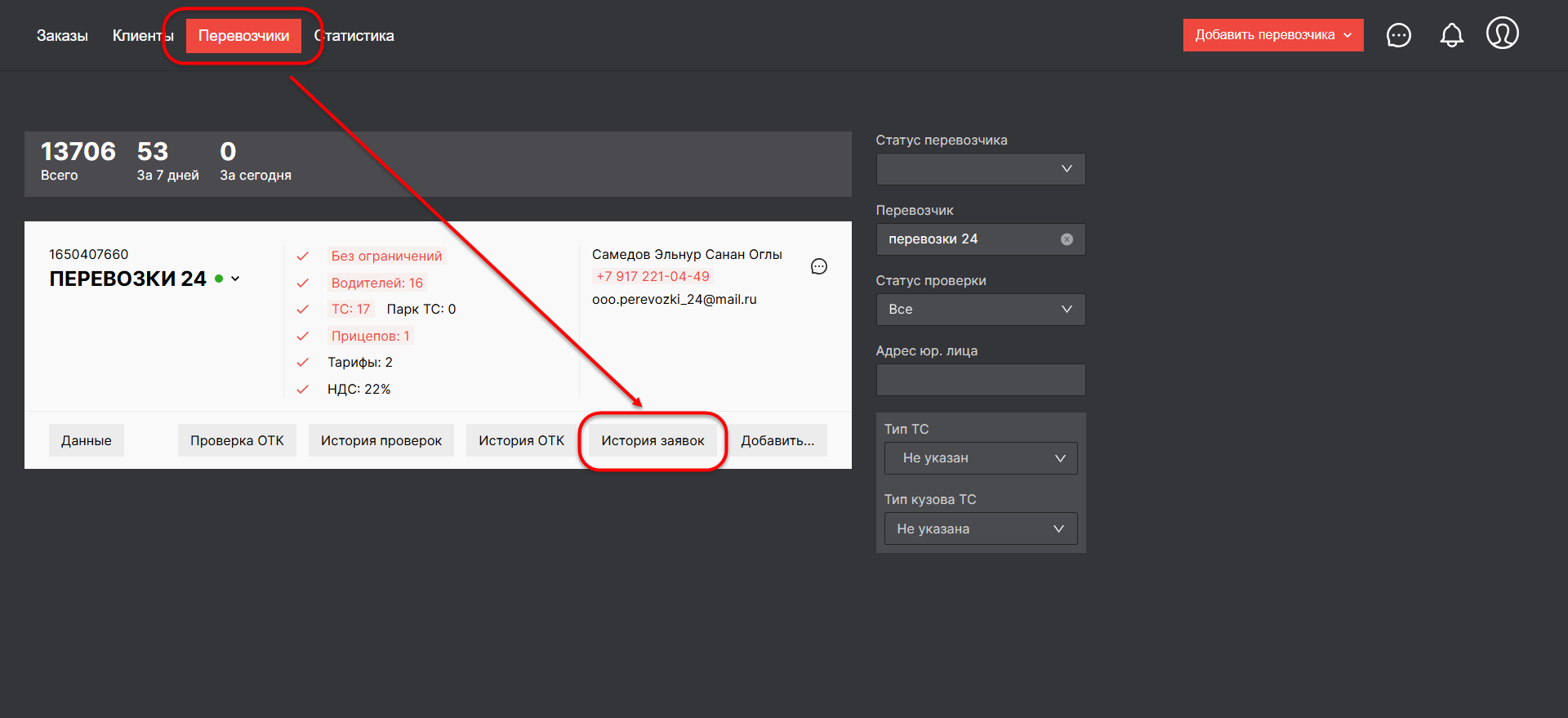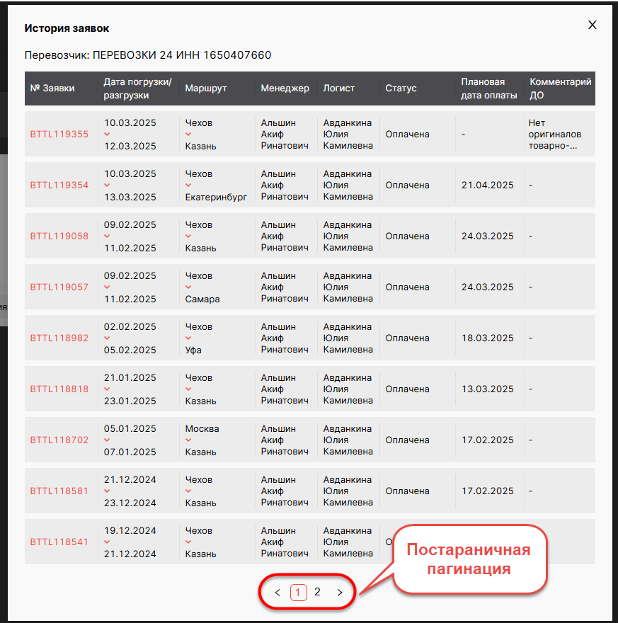 DD-4392: [ЛК ГВ] — [Изменить вывод истории заказов в разделе клиенты и заявок в разделе перевозчики]